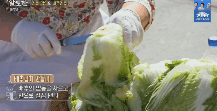 *배추 밑동 자르고 위에 살짝 칼집 넣고 살짝만 반 가르는 법.
